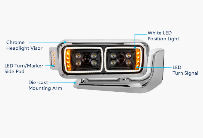 10 High Power LED “Blackout” Projection Headlight Assembly W/Mounting Arm & Turn Signal Side Pod – Passenger Side